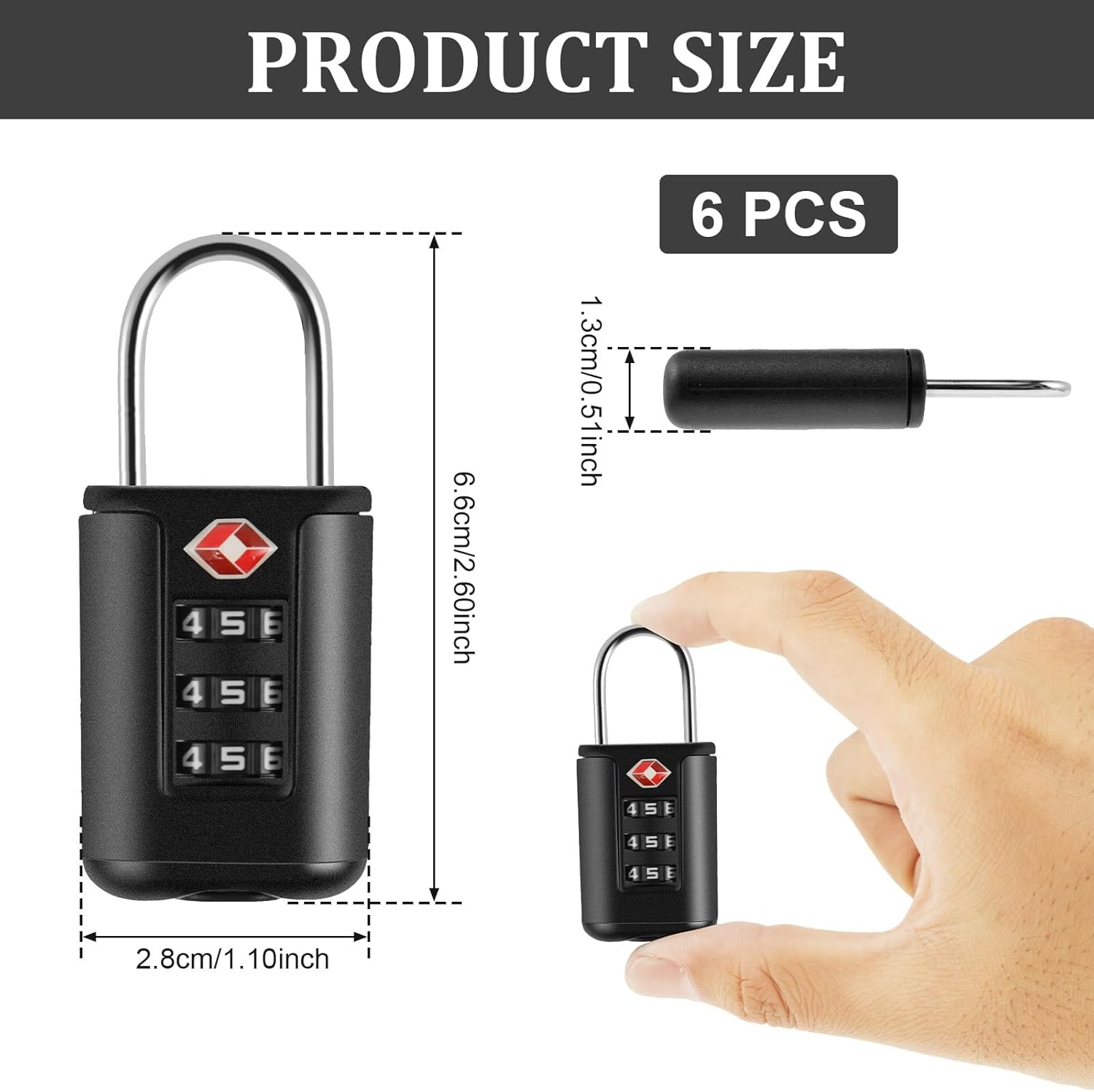 【MULTIPURPOSE TSA APPROVED LOCKS FOR LUGGAGE】This 6 pack TSA locks set will fit any kind of travel security needs. The luggage lock can be used to protect a variety of items, such as equipment cases lock, suitcase lock, backpack lock, purses lock,school gym locker lock, sports lockers lock, toolbox, bag lock, briefcases lock,laptop bag lock, zipper lock and fence lock.